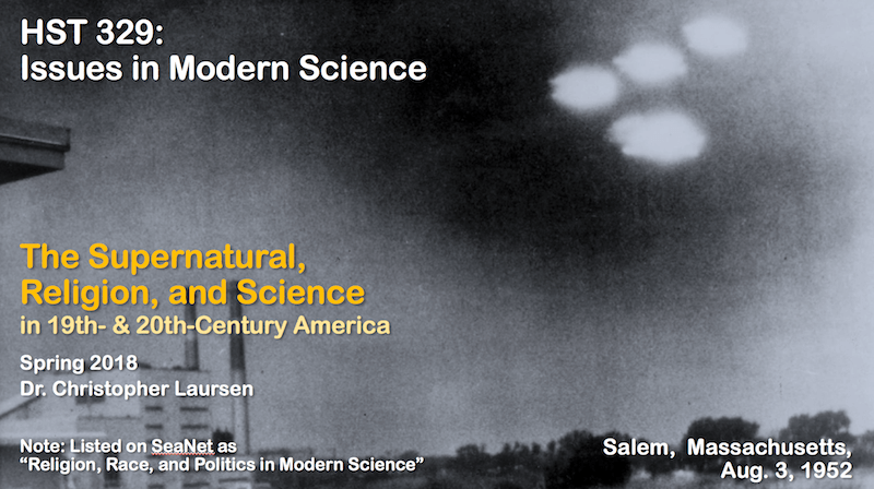 In this course, you will study how through religion and science from 1800 to 2000, Americans (and, by connection, people from other parts of the world) have negotiated the boundaries of natural and supernatural (or, even more accurately, preternatural – things that occur in nature but have yet to be effectively explained). Boundaries became drawn between what is considered normal and paranormal. How have these boundaries been constructed in religion and science? And how does “boundary-work” seek to expand how we understand nature and self through the supernatural?